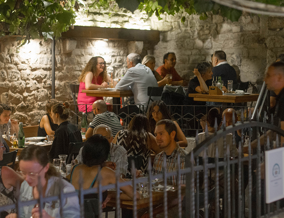 Da biste stigli do nas, prođite kroz Zlatna vrata i spustite se u prvu uličicu s lijeve strane i tu smo. Šarmantan, obiteljski restoran poslužit će vam djelić mediteranske kulture. Nakon istraživanja impresivnih građevina koji otkrivaju bogatu povijest palače, isprobajte ukusnu hranu koja je također dio nje. Naša vanjska terasa prekrivena listovima vinove loze vrhunsko je mjesto za opuštanje i uživanje u tradicionalnim receptima u svježem i ugodnom ambijentu.